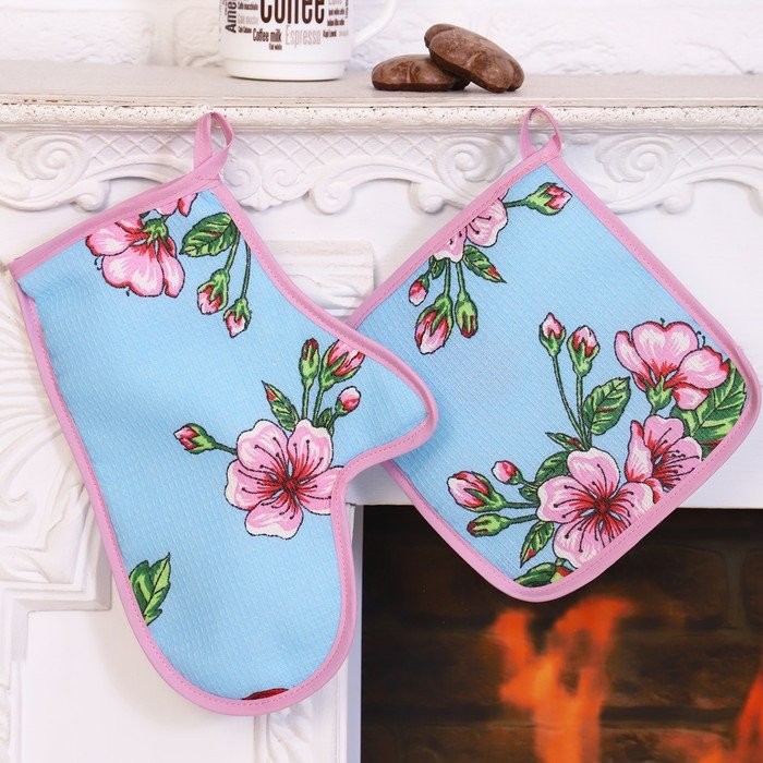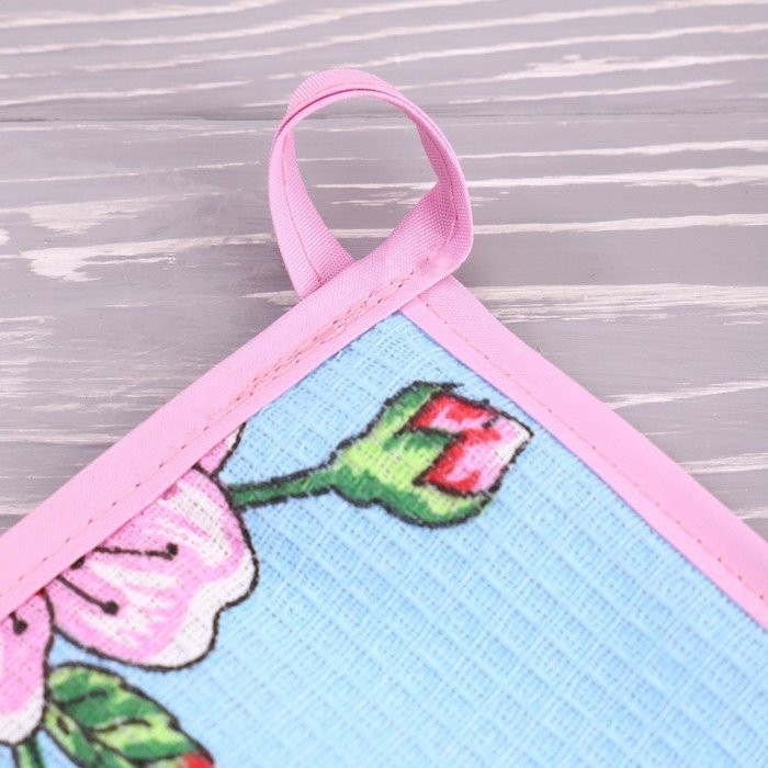 Набор кухонный Вишня 077 (варежка+прихватка), голубой, хл, вафля