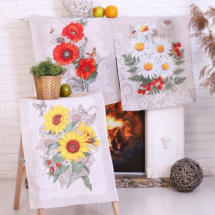 Набор полотенец в коробке Подсолнух 45×60 см, 3 шт, вафля, 170 гр/м2, хлопок 100%