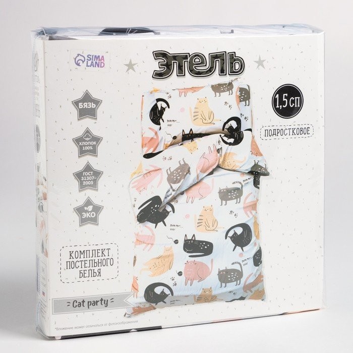 Постельное бельё Этель 1.5 сп Cat party, 143*215 см, 150*214 см, 50*70 см -1 шт,100% хлопок, бязь