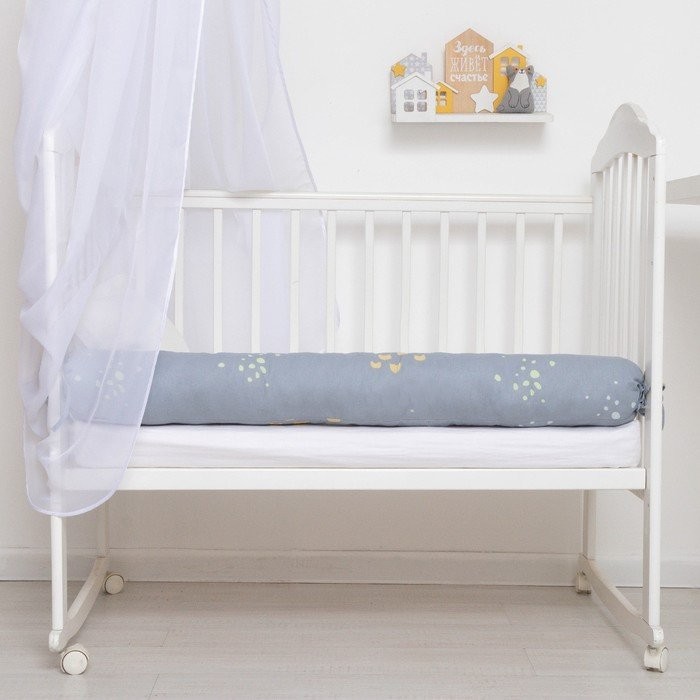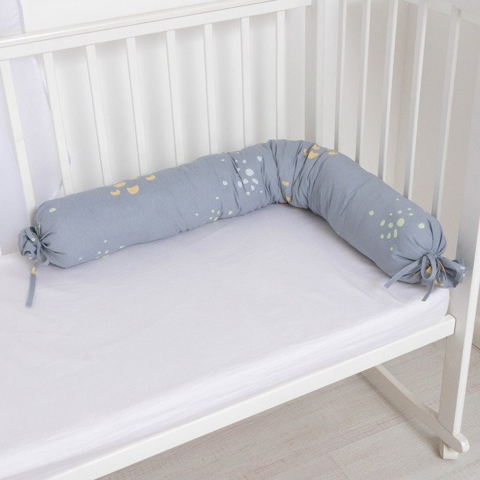 Бортик в кроватку Крошка Я «Light gray dino» 20×120 см, 100% хлопок