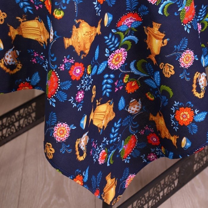 Скатерть 150×180 см Самовары, синий, хл 100%, рогожка