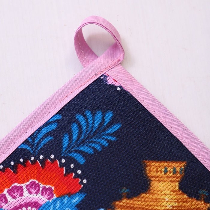 Набор кухонный (Варежка 26*30 см+прихватка 18*18 см) Самовары, синий, рогожка, хл 100%