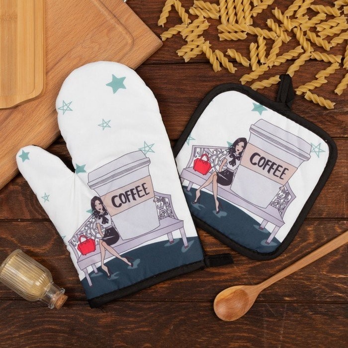 Кухонный набор (2 предмета) Этель LoveLife «Бизнес-леди», прихватка 17×17 см, варежка 26×16 см, 100% п/э