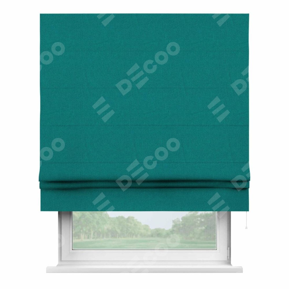 Римская штора «Кортин» для проема, ткань лён димаут, тёмно-бирюзовый