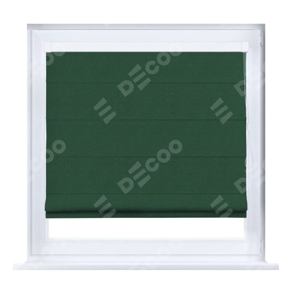 Римская штора производителя «Cortin», устанавливается на створку окна, пошита из ткани лён димаут тёмно-зелёный, артикул 16246. Штора шьётся по индивидуальным размерам, для данного типа римской шторы возможная ширина от 35 до 150 см., высота до 250 см.