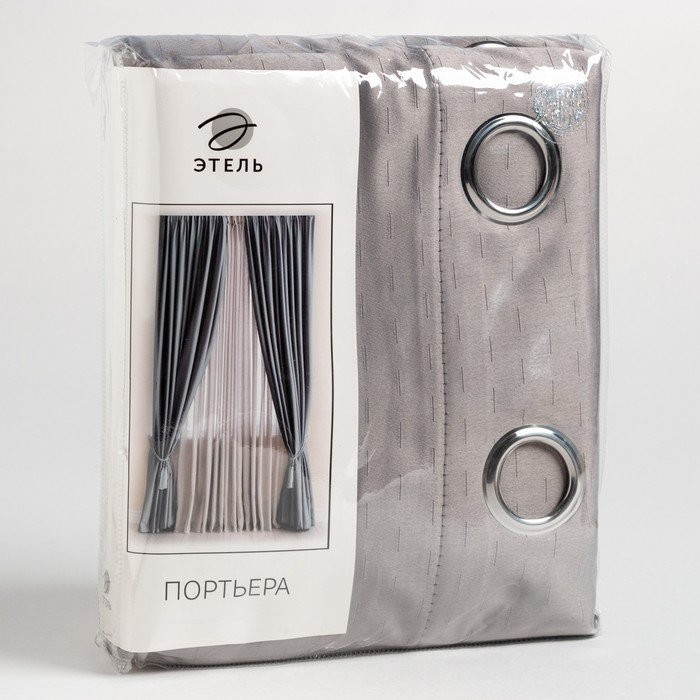 Штора портьерная Этель «Штрихи» цв.цв.серый,на люверсах 130*300 см, 100% п/э