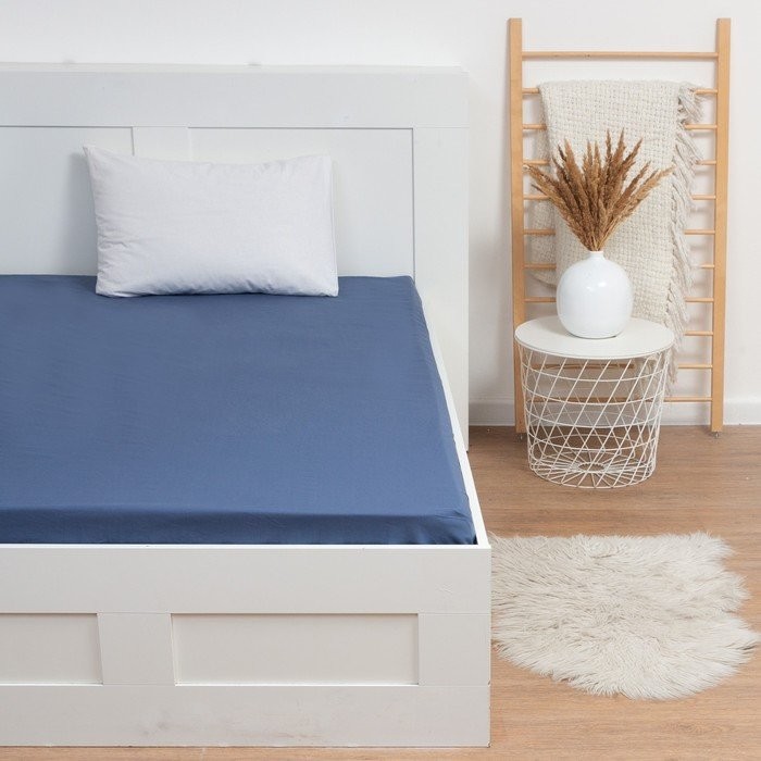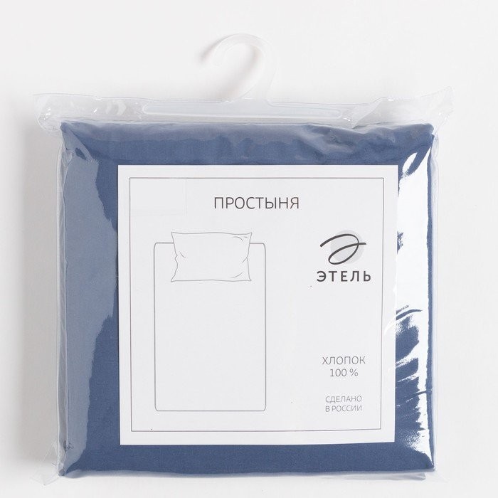 Простыня Этель 220*240 ± 3 см, цв. синий, жатый хлопок, 140 гр/м2, 100% хлопок