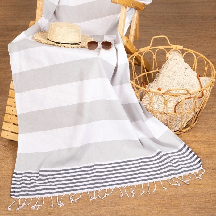 Пештемаль для пляжа, бани, сауны «Фортуна» 100×180 см, серый