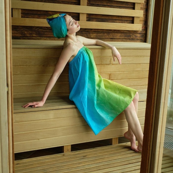 Набор для сауны Экономь и Я «Радуга» (полотенце-парео + чалма) 100%хл, 200 г/м2