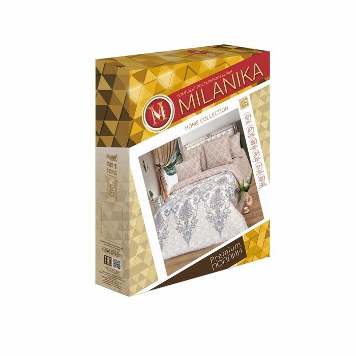Постельное бельё 2сп Миланика Медальон 175х217см, 200х217см, 70х70см 2 шт, поплин 117г/м, хлопок 100%