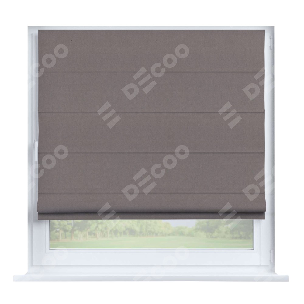 Римская штора производителя «Cortin», устанавливается на створку окна, пошита из ткани вельвет тёмно-бежевый, артикул 82527. Штора шьётся по индивидуальным размерам, для данного типа римской шторы возможная ширина от 35 до 150 см., высота до 250 см.