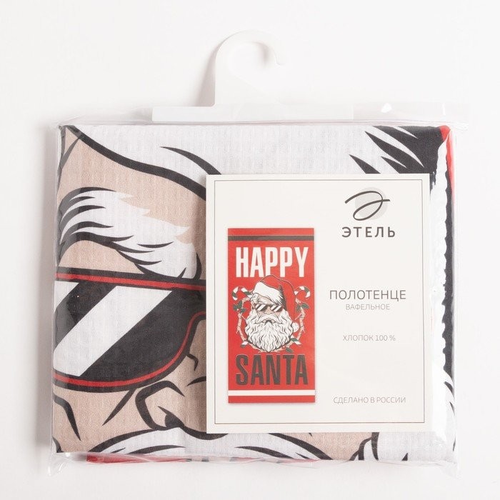 Полотенце Этель Happy Santa 70×146 см, 100% хлопок 160гр/м2