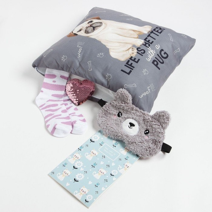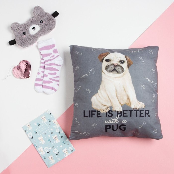 Подарочный набор «Мопс» подушка-секрет, 40×40 см и аксессуары