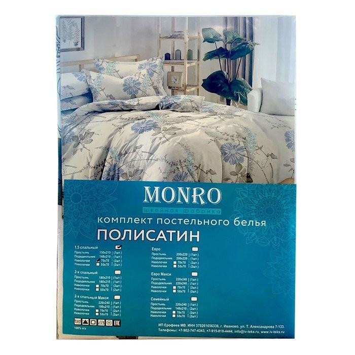 Постельное бельё Monro Евро 200×210, 200×210, 70х70см 2шт полисатин 80г/м, пэ100%
