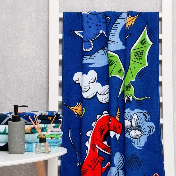 Полотенце Love Life «Динозаврики» 70*140 см, велюр/махра 340гр/м2, 100% хлопок