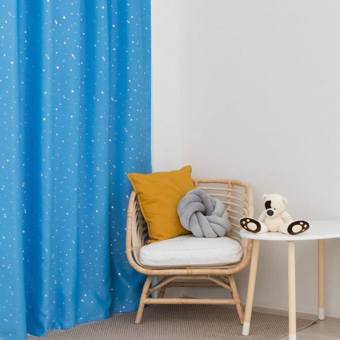 Портьера Этель «Звезды» без держателя, цвет голубой, 145×260 см, блэкаут, 100% полиэстер
