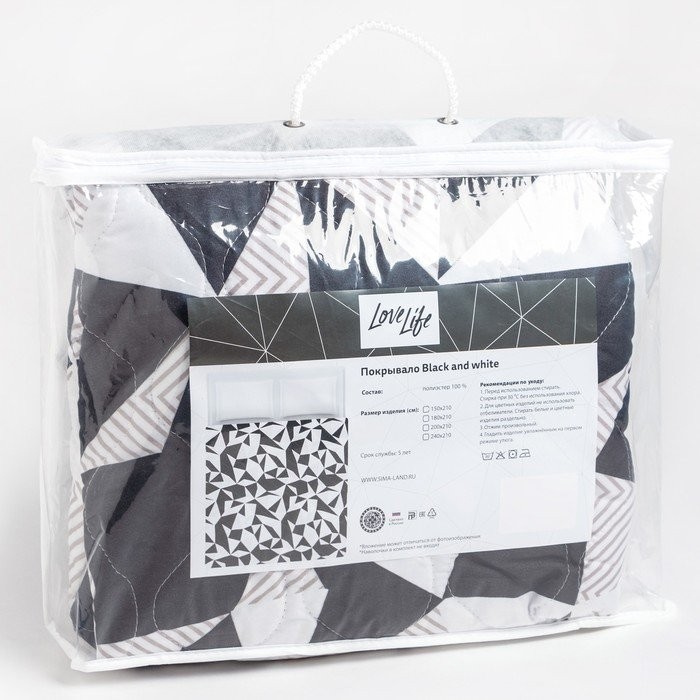 Покрывало LoveLife евро Black and white 200*210±5 см, новосатин,80 г/м2