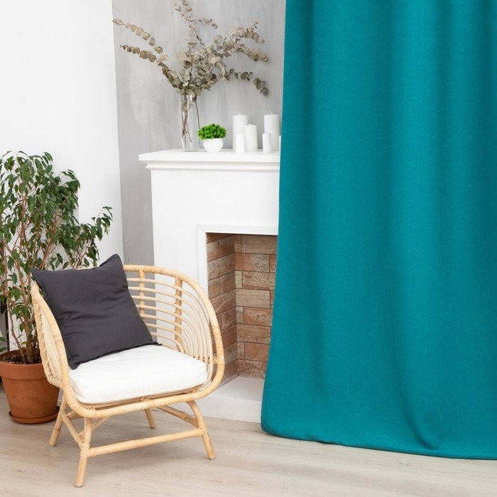 Штора портьерная Этель «Структурная», цвет синий, на шторной ленте, 145×265 см, 100% п/э