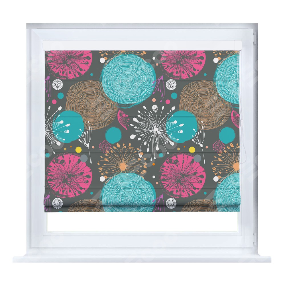 Римская штора кассетного типа, производителя «Cortin», устанавливается только на пластиковые окна и прилегает к стеклопакету, пошита из ткани блэкаут с нанесением сублимационной печати «Милый гранж».