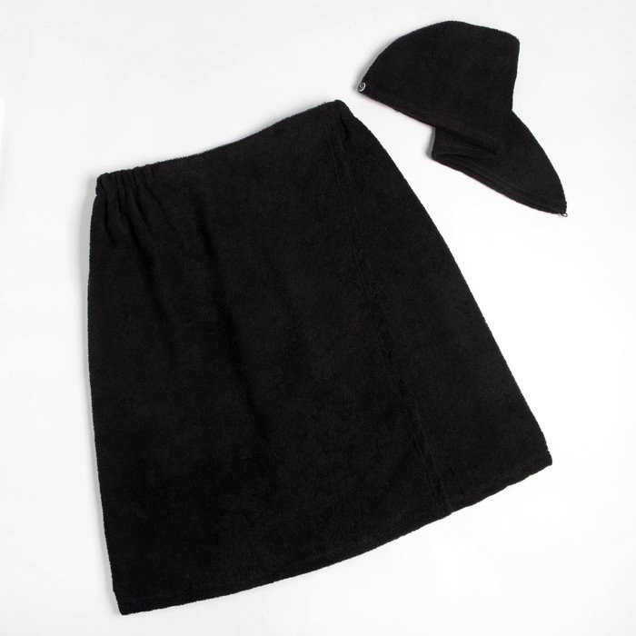 Набор для сауны Экономь и Я: полотенце-парео 68*150см + чалма, цв.черный, 100%хл, 320 г/м2