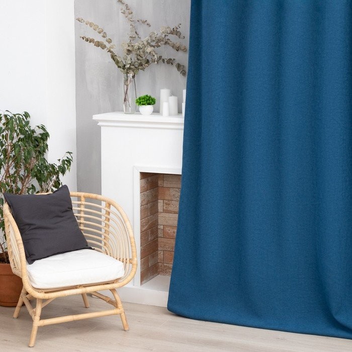 Штора портьерная Этель «Структурная», цвет синий, на шторной ленте, 270×300 см, 100% п/э