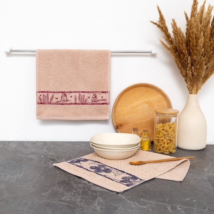 Комплект полотенец махровых кремовый/кремовый прованс 30*50 400г/м, хл100%
