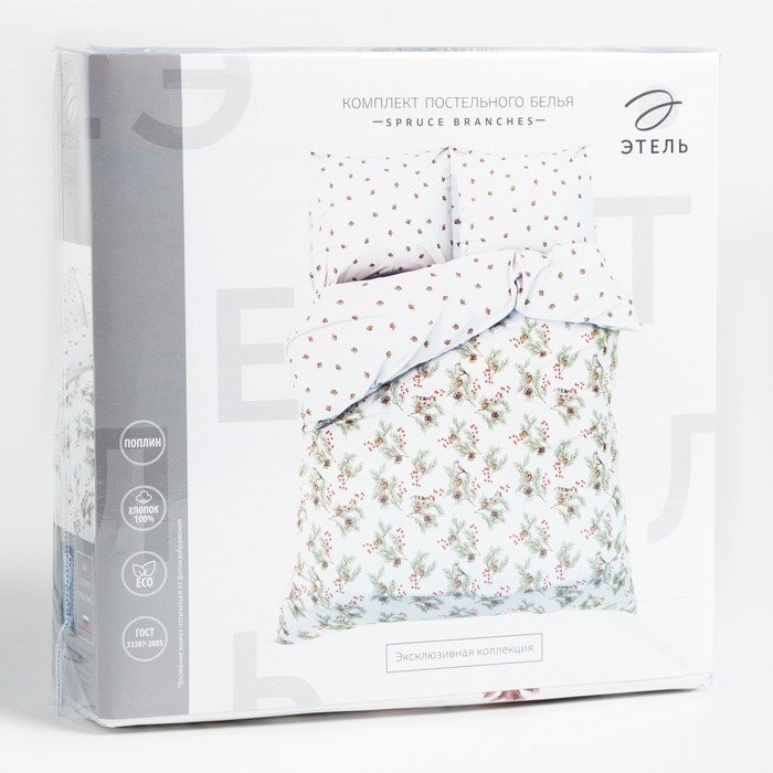 Постельное бельё Этель 2 сп Spruce branches 175×215 см, 200×220 см,70×70 см -2 шт, поплин 125 г/м2