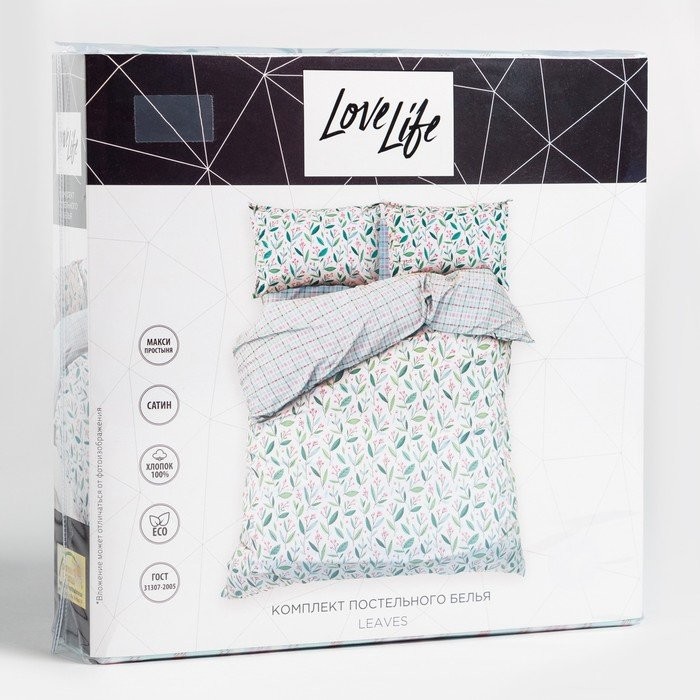 Постельное бельё LoveLife 1, 5сп Leaves 143х215см, 150х225см, 50х70см-2шт, 100%хлопок, сатин, 125г/м²