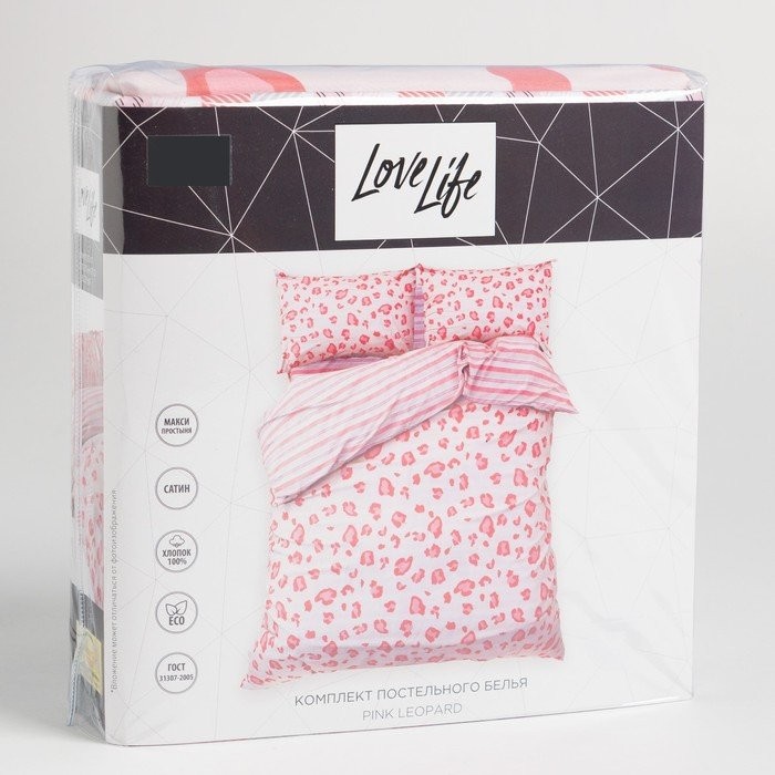 Постельное бельё LoveLife 2сп Pink leopard 175×215 см, 200×225 см, 50х70см-2шт, 100%хлопок, сатин, 125г/м