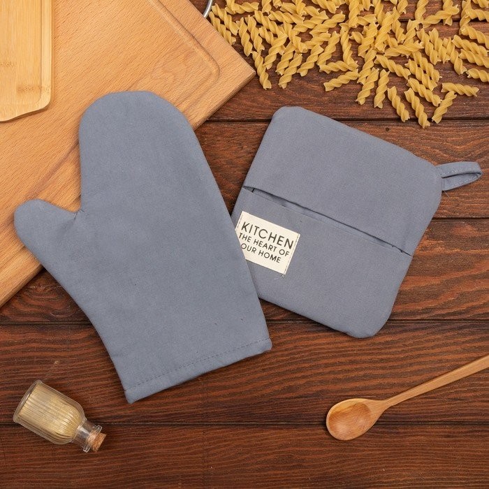 Набор кух. Этель Kitchen, цв. синий, варежка-прихватка 18×29 см, прихватка 19×19 см