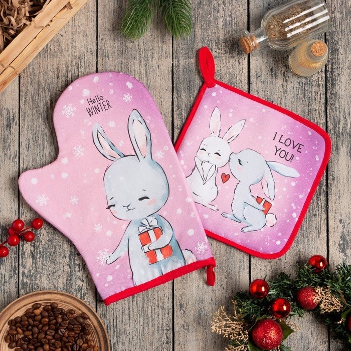 Набор кух. «Hello winter» варежка-прихватка 20×28 см, прихватка 19×19 см, 100% хл