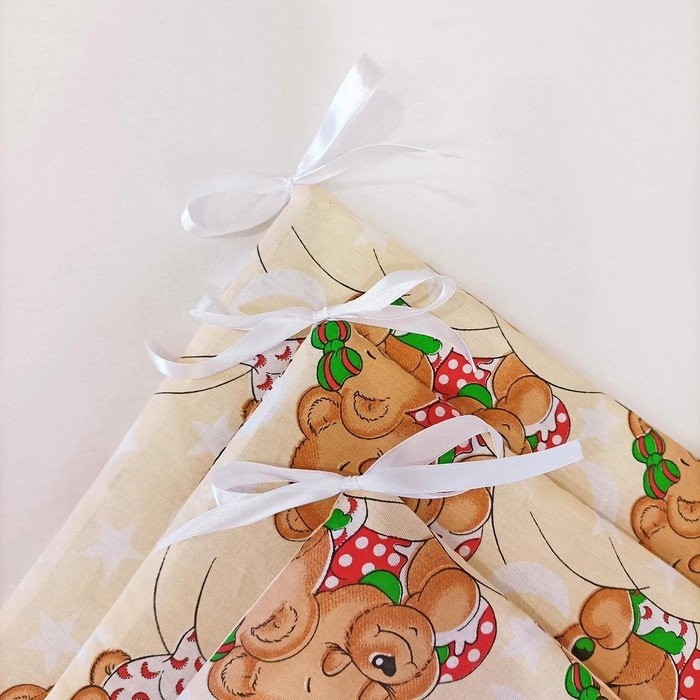 Бортик «Спящие мишки» бязь, лотекс, 4 части 40×60 см  (2 шт), 40×120 см  (2 шт), цвет бежевый