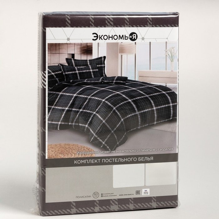 Постельное бельё Экономь и Я 1,5 сп «Клетка» (вид 2) 147×210 см, 150×215 см, 70×70 см-2 шт, полисатин, 80 г/м²