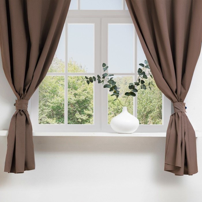 Комплект штор д/кухни с подхватами Этель Kitchen, цв. коричневый, 150×180 см — 2 шт
