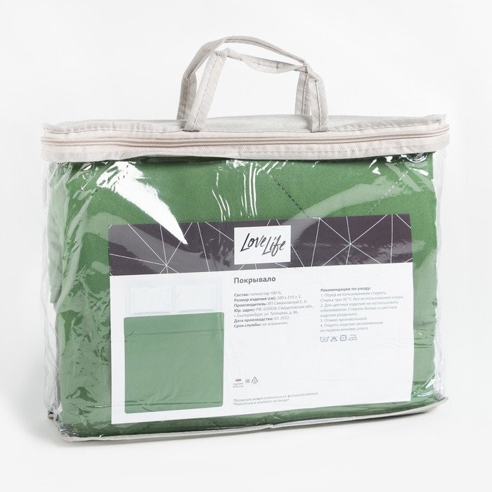 Покрывало LoveLife 1,5 сп 150×210±5 см, цвет зелёный, микрофайбер, 100% п/э