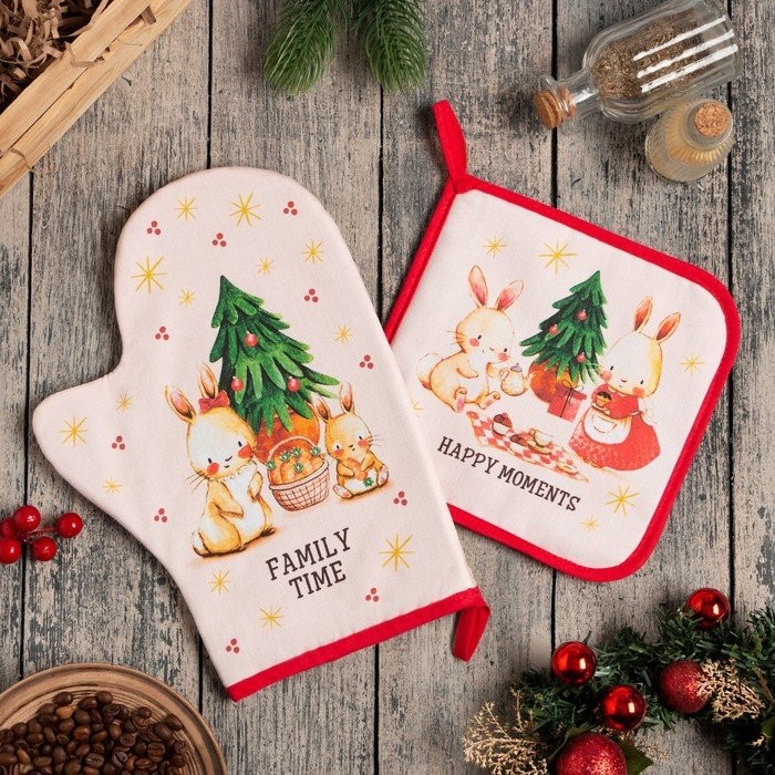 Набор кух. «Happy moments» варежка-прихватка 20×28 см, прихватка 19×19 см, 100% хл
