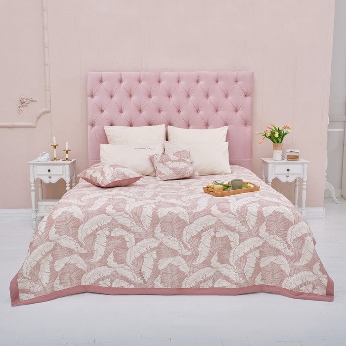 Покрывало хлопковое Этель «Перья» 180×240 см, цвет бежевый, 100% хлопок, 300гр/м2