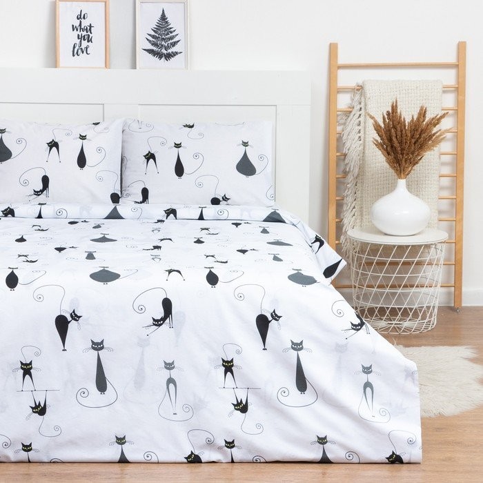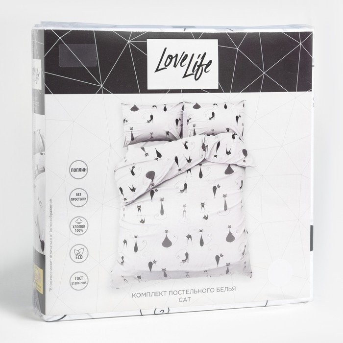 Постельное бельё Евро LoveLife Cat пододеяльник 200×217 см+наволочка 50*70 см-2шт, поплин, 125 г/м²
