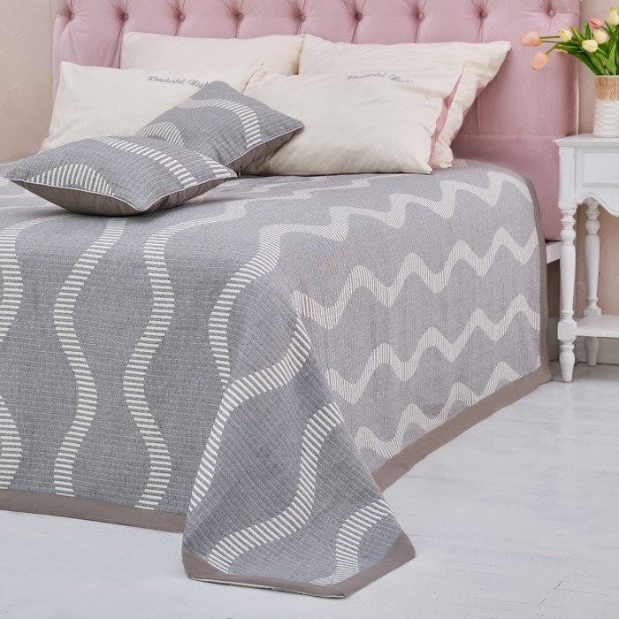 Покрывало хлопковое Этель «Волны» 180×240 см, цвет серый, 100% хлопок, 300гр/м2