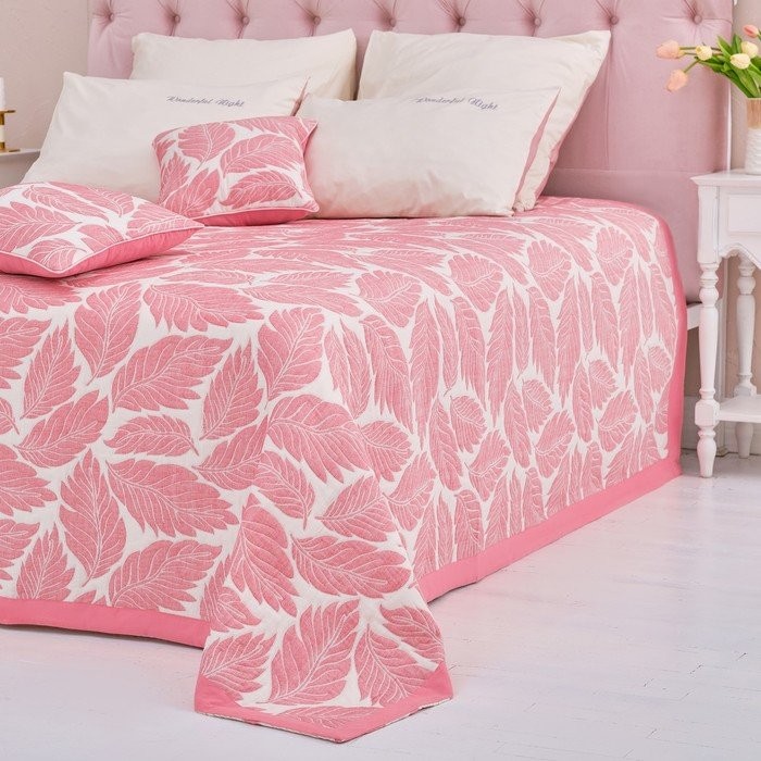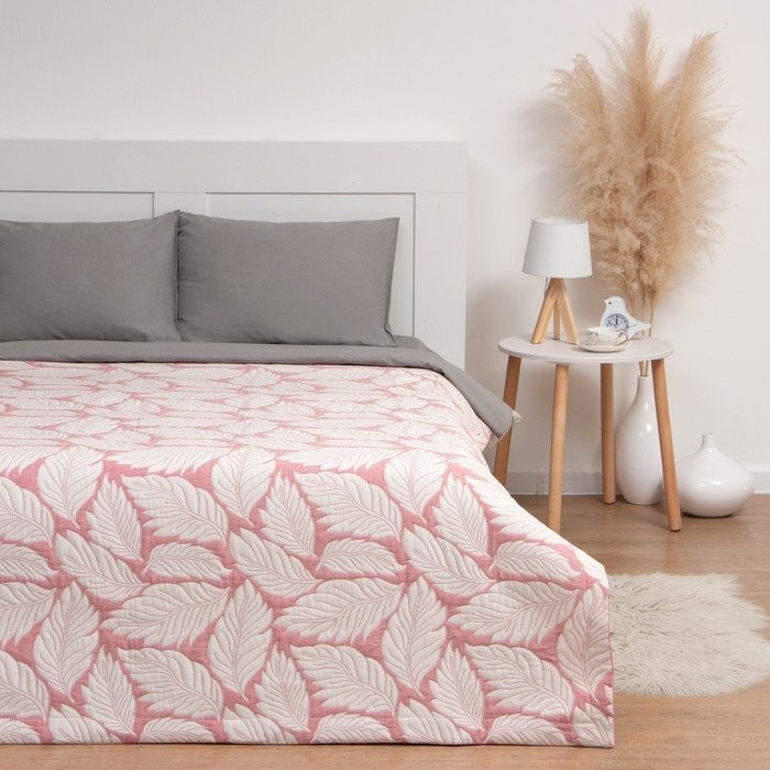 Покрывало хлопковое Этель «Листопад» 200×240 см, цвет розовый, 100% хлопок, 300гр/м2