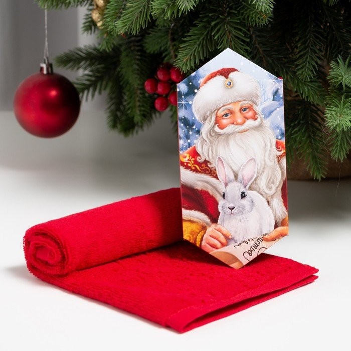 Полотенце махровое Этель «Дед Мороз и зайка» 30×30 см, 100 хл, 340г/м2