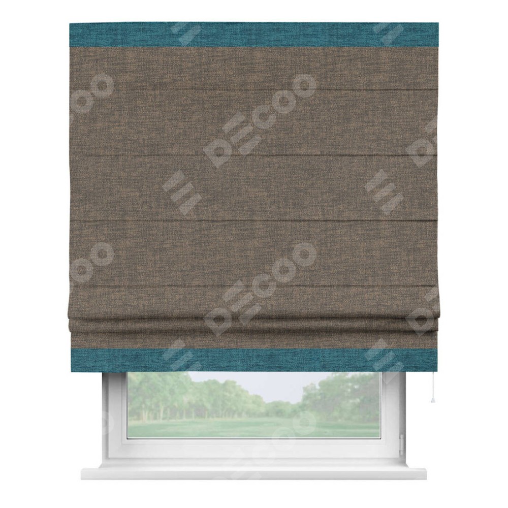 Римская штора «Кортин» с кантом Горизонт, для проема, ткань рогожка димаут, коричневый