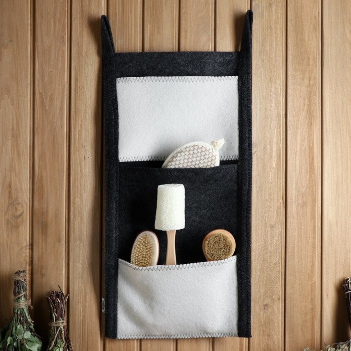 Коврик банный настенный, войлок, 3 кармана 79×36 см черно-белый