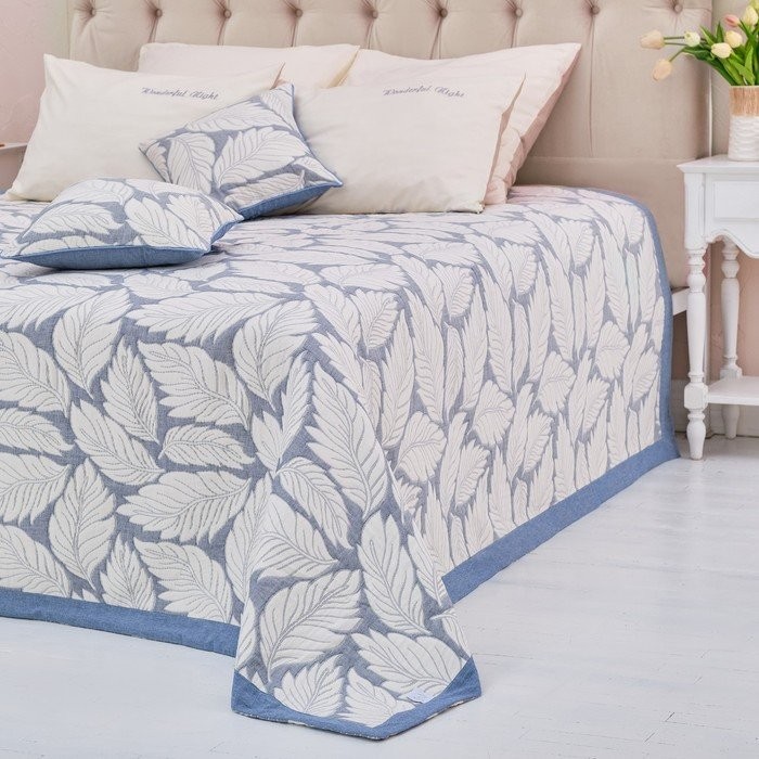Покрывало хлопковое Этель «Листопад» 200×240 см, цвет синий, 100% хлопок, 300гр/м2