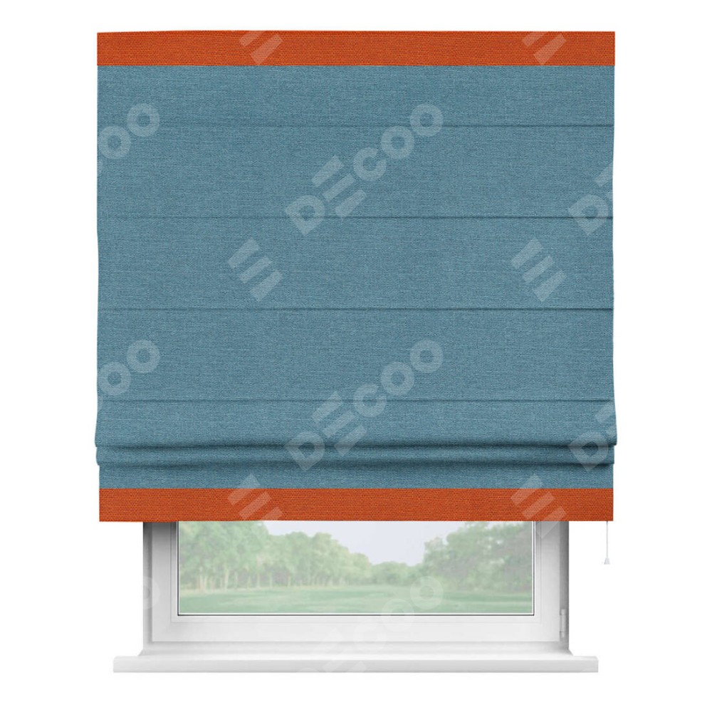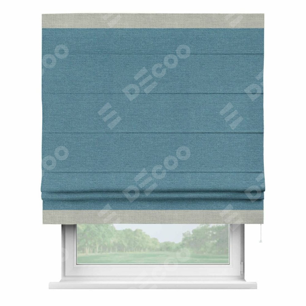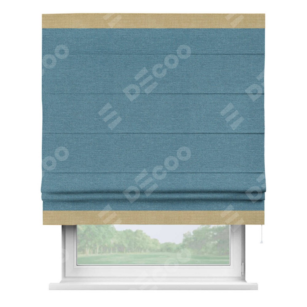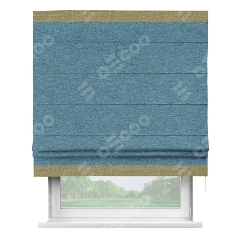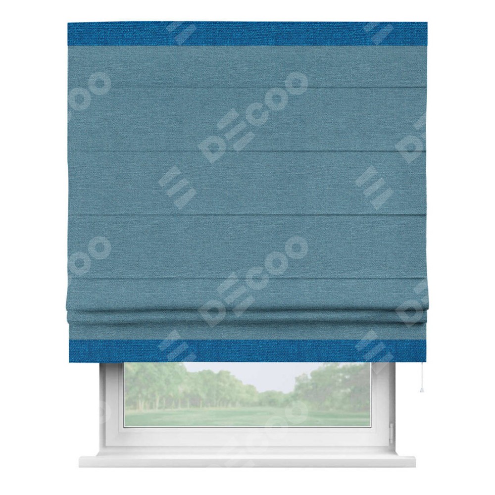 Римская штора «Кортин» с кантом Горизонт, для проема, ткань лён голубой