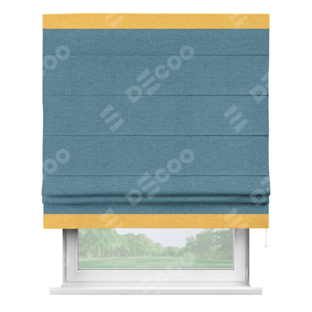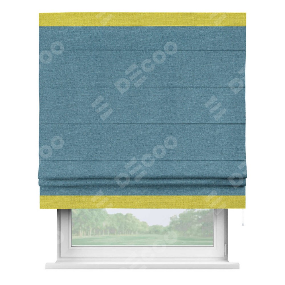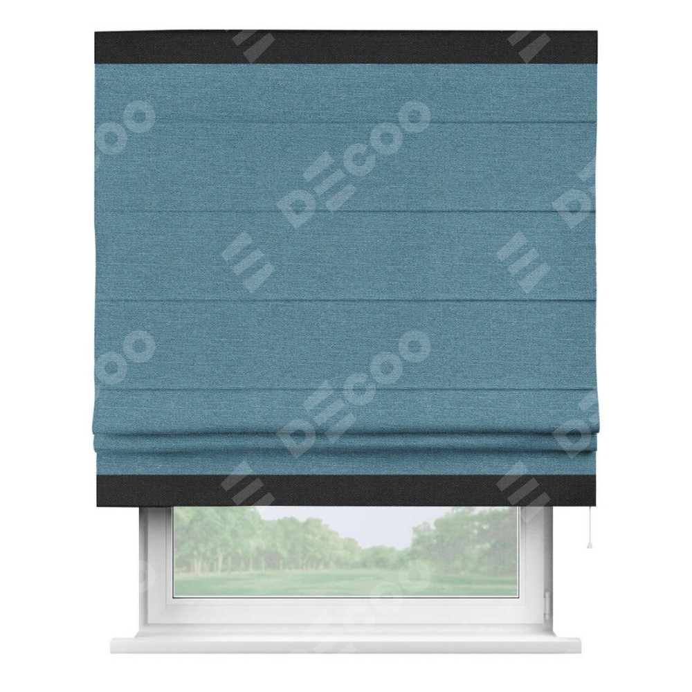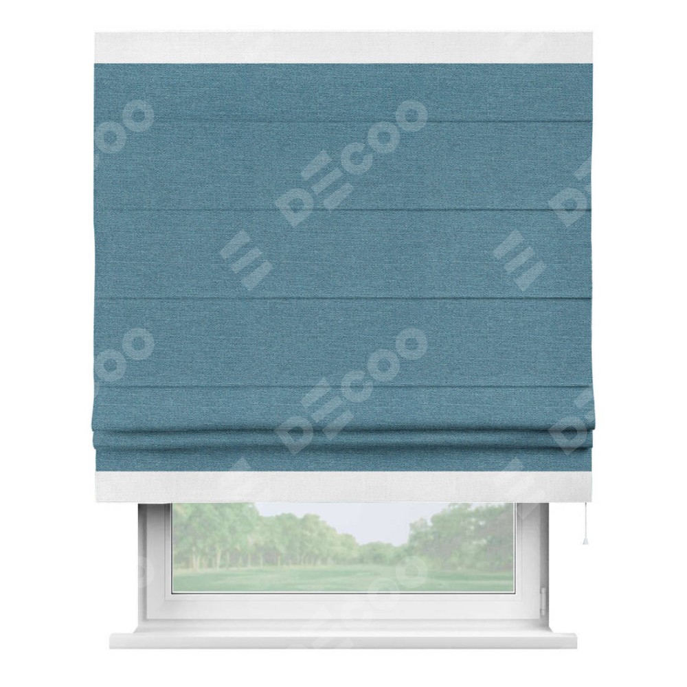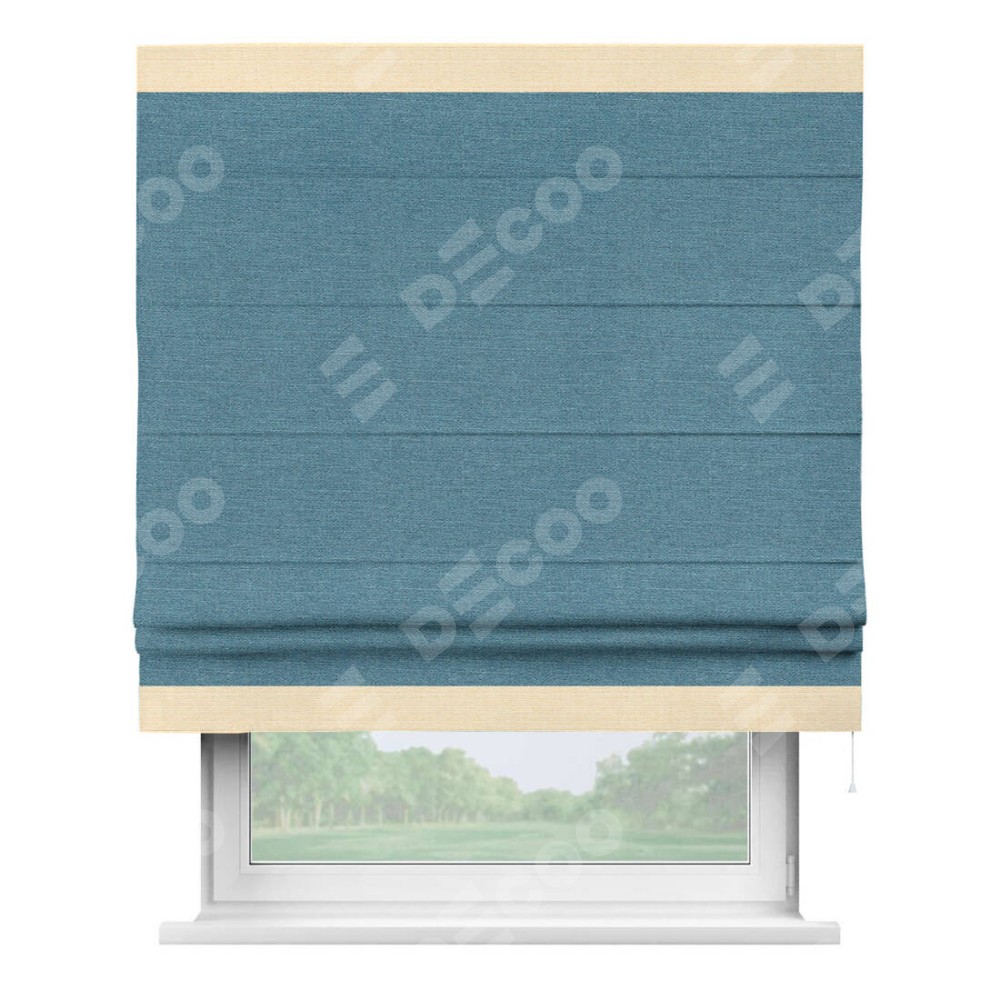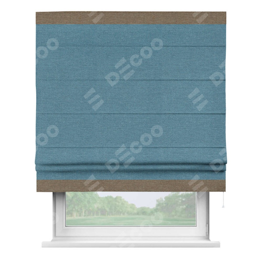 Римская штора «Кортин» с кантом Горизонт, для проема, ткань лён голубой