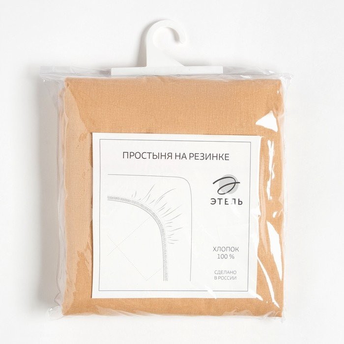 Простыня на резинке Этель 180х200×25, цвет бежевый, 100% хлопок, бязь 125г/м2