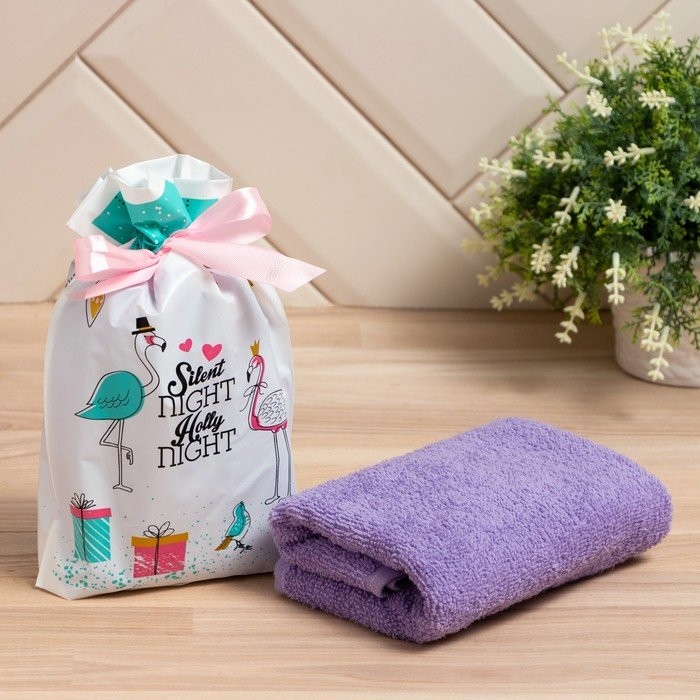 Полотенце в мешочке Экономь и Я «Фламинго» 30*60 см, 100% хлопок, 320 гр/м2