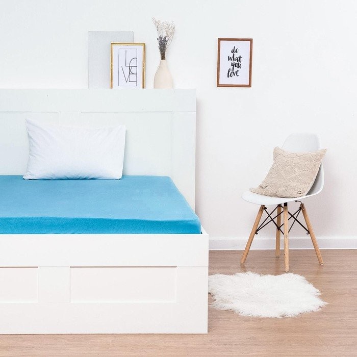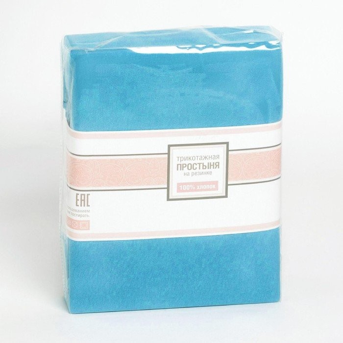 Простыня на резинке трикотажная, размер 140х200х25см цвет бирюза, кулирка 120г/м², 100% хлопок