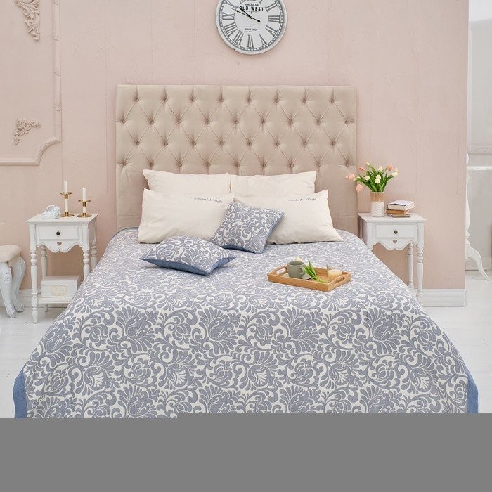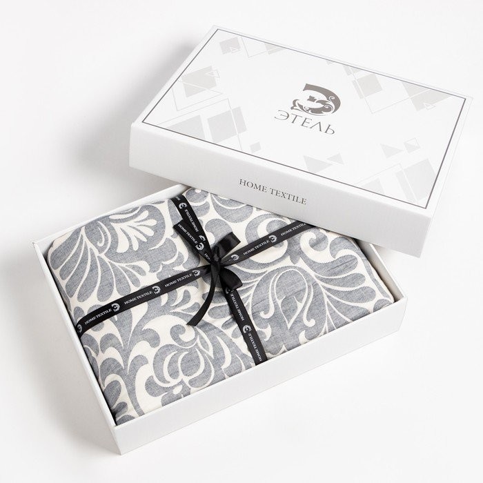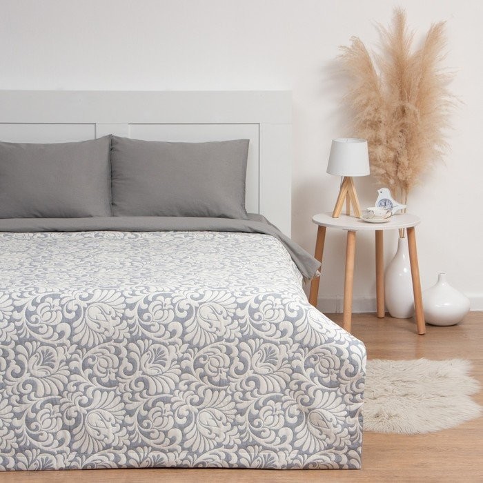 Покрывало хлопковое Этель «Узоры» 180×240 см, цвет серый, 100% хлопок, 300гр/м2